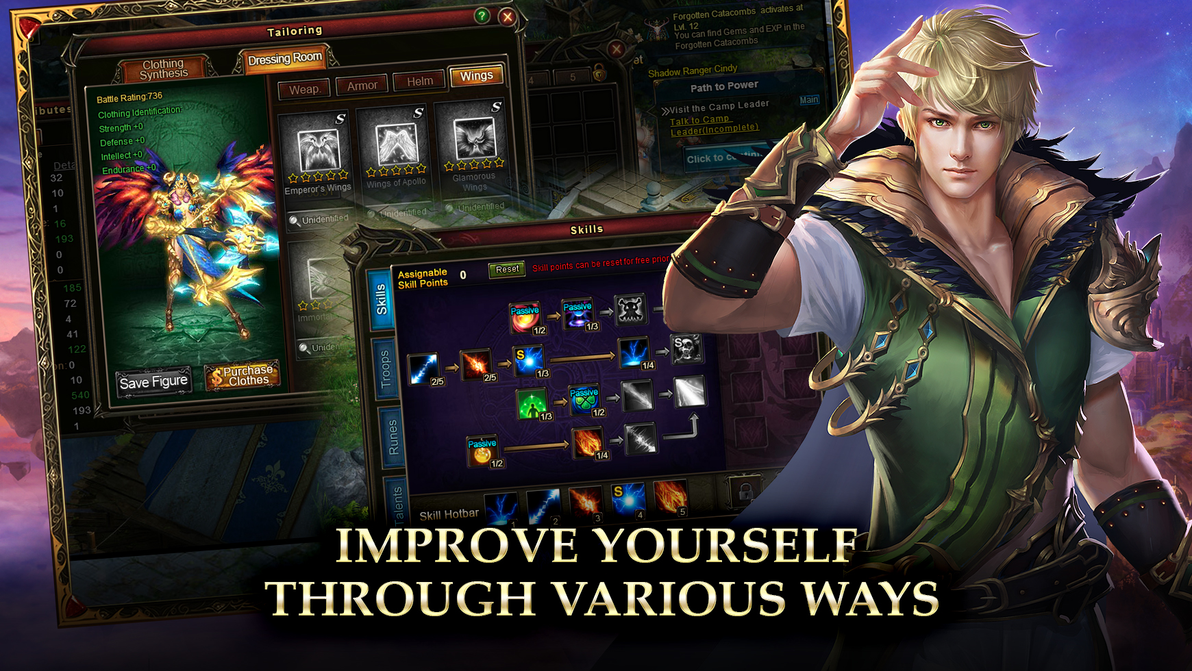 Demon Slayer is full of interesting stories, PvE battles, and big boss raids! But, of course, the biggest and most entertaining part of the game is its massive, exciting PvP. You can fight in the city arenas, conquer foreign cities, and even wage fierce battles for the world's gold mines! Create your unique character–warrior, mage, or archer. And that's just the beginning! Improve your skills, learn talents from the two-branched talent tree and the unique astral transformation system, and create items and upgrade them with powerful gems! Fight and conquer, triumph on the battlefield, and seize cities and gold mines!